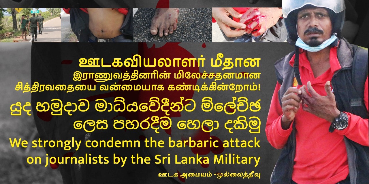 முல்லைத்தீவு முள்ளிவாய்க்கால் பகுதியில் முல்லைத்தீவு மாவட்டத்தின் பிராந்திய ஊடகவியலாளரும் முல்லைத்தீவு ஊடக அமையத்தின் பொருளாளருமான விஸ்வலிங்கம் விஸவச்சந்திரன் இராணுவத்தினரால் தாக்கப்பட்ட…