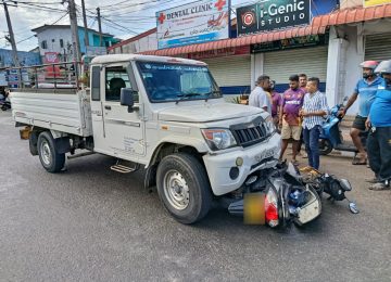 திருகோணமலை – மடத்தடி சந்தியில் பட்டா ரக வாகனம் மோட்டார் சைக்கிளில் மோதி விபத்துக்குள்ளானதில் மோட்டார் சைக்கிளில் பயணித்த நபர் படுகாயங்களுக்கு உள்ளான நிலையில் திருகோணமலை வைத்தியசாலையில் அனுமதிக்கப்பட்டுள்ளார். இவ் விபத்துச் சம்பவம் இன்று ஞாயிற்றுக்கிழமை (19) காலை இடம்பெற்றுள்ளது.