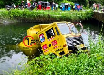 கால்வாயில் கவிழ்ந்து டிப்பர் வாகனம் விபத்து!