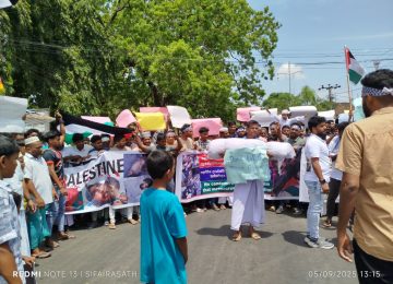 பலஸ்தீனில் தற்போது இடம்பெற்று வரும் மனிதாபிமானமற்ற குற்றச்செயல்கள், இனப்படுகொலைகள் மற்றும் பசியால் உயிரிழப்புகள் அதிகரித்து வரும் நிலையில், இதனை எதிர்த்து, இன்று (05) வெள்ளிக்கிழமை மூதூரில் ஒரு பாரிய கவனயீர்ப்பு பேரணி இடம்பெற்றது.