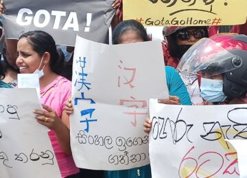 வவுனியாவில் இன்று (28) மேற்கொள்ளப்பட்ட ஒன்றிணைந்த கூட்டுத் தொழிற்சங்க போராட்டத்தின்போது சீனா மொழியில் காட்சிப்படுத்தப்பட்ட பதாதையை தாங்கியவாறு போராட்டப் பேரணியில் கலந்து கொண்டதை அவதானிக்க முடிந்தது.