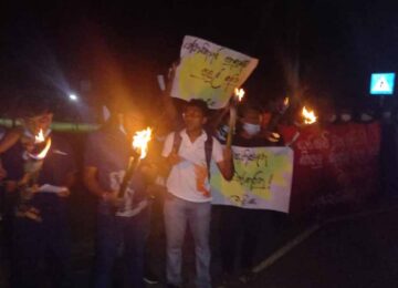 பல்வேறு கோரிக்கைகளை முன்வைத்து, தென்கிழக்கு பல்கலைக்கழகத்துக்கு முன்னால் தீப்பந்தம் மற்றும் சுலோகங்களை ஏந்தியவாறு மாணவர்கள், நேற்றிரவு (07) போராட்டத்தில் ஈடுபட்டனர்.