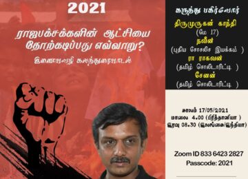 முள்ளிவாய்க்கால் நாளில் எமது போராட்ட நகர்தல் பற்றிய உரையாடலை செய்ய போராட்டச் சக்திகள் பலரை அழைத்து தமிழ் சொலிடாரிடிட்டியும் ஒரு உரையாடலை ஒழுங்கு செய்துள்ளது. எல்லோரும் கலந்து கொள்ளுங்கள். எத்தனை அழிவு – உடைப்பு செய்யினும் எமது போராட்ட வேட்கை ஓங்குவதை…