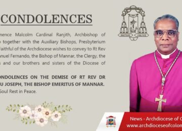 வடக்கு, கிழக்குப் பிரதேசங்களில் மோதல்கள் இடம்பெற்ற காலப்பகுதியில் மறைந்த ஆயர் இராயப்பு யோசேப் ஆண்டகை நெருங்கிய வகையில் தொடர்புபட்டு ஆற்றிய அளப்பரிய பணிகளை தனிப்பட்ட முறையில் நான் நன்கறிவேன் என பேராயர் கர்தினால் மல்கம் ரஞ்சித் ஆண்டகை தனது இரங்கல் செய்தியில்…