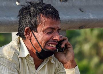 உயிரிழந்த தனது ஒன்றரை வயது குழந்தையின் முகத்தை கடைசியாக ஒரு முறை பார்க்கவேண்டும் என நினைத்தும் சொந்த ஊருக்கு செல்ல முயலாமல் இருக்கும் புலம்பெயர்ந்த தொழிலாளியின் நிலைமையை இந்த புகைப்படம் எடுத்துக்கூறுகிறது.