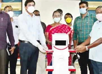 தஞ்சை மருத்துவக்கல்லூரி மருத்துவமனையில், கொரோனாவால் பாதிக்கப்பட்டு சிகிச்சை பெறுபவர்களுக்கு உணவு வழங்குவதற்காக ரோபோவை தனியார் பல்கலைக்கழகம் வழங்கியது.தஞ்சை