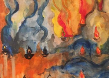 ஒன்பது நிமிடங்கள் ஆயிரம் ஆயிரம் அகல் விளக்குகள் ஏற்றுகிறோம். அலை எழுப்ப மறுத்தன. மண்ணிலிருந்தும் மாடங்களிலிருந்தும் அவை மேலெழுகின்றன. ஒளியை விட மேலோங்கும் நீலப் புகை மந்திர வனப்பும் கடவுளர் விருப்பும் கூட வர அவை சென்ற இடமும் ஒளிர்ந்த இடங்களும்…