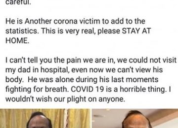 லண்டனில் #Covid19 தாக்கத்திற்குப் பலியான இலங்கைத் தமிழர் அமரர் குகபிரசாத் அவர்களின் மகளின் பதிவின் தமிழாக்கம் இது… “நாங்கள் கவனமாக இருப்பதாகவே நினைத்துக்கொண்டிருந்தோம்… எங்கிருந்து அவருக்குத் தொற்றியது என்று தெரியவில்லை. உலகில் கொரொனாவிக்குப் பலியானோர் எண்ணிக்கையில் அவரும் சேர்க்கப்படுகிறார். ” STAY…