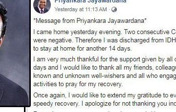 இலங்கையில் கொரோனா வைரஸ் தொற்றால் பாதிக்கப்பட்ட நிலையில், அங்கொடை தொற்று நோய் வைத்தியசாலையில் ; சிகிச்சை பெற்று வந்த விஷேட வைத்திய நிபுணர் பிரியங்கர ஜயவர்தன பூரண குணமடைந்து அங்கிருந்து வெளியேறியுள்ளார்