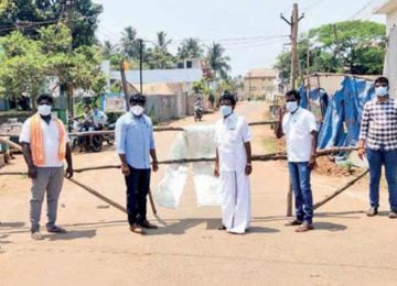 பொன்னேரி அருகே கொரோனா வைரஸ் பரவாமல் இருக்க தங்களை தாங்களே தனிமைப்படுத்திக்கொண்ட 25 கிராமங்களை சேர்ந்த பொதுமக்கள், தங்கள் ஊர் எல்லையில் சாலையை மறித்து கம்பு