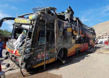 பெரு நாட்டில் சுற்றுலா பயணிகள் பயணம் செய்த பேருந்து விபத்துக்குள்ளானதில் ஜெர்மனியை சேர்ந்த 2 சுற்றுலா பயணிகள் உள்பட 16 பேர் சம்பவ இடத்திலேயே உடல் நசுங்கி உயிரிழந்தனர்.