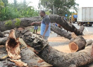 பாரிய மரம் சரிந்து விழுந்ததில் போக்குவரத்து நெரிசல் ; மரத்தை அகற்றிய பிரதேச சபை உறுப்பினர்