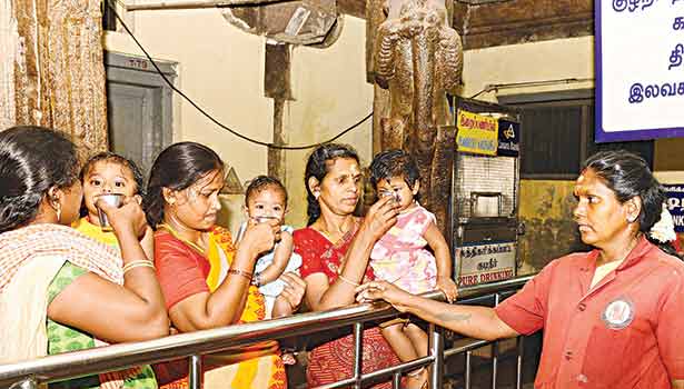 மதுரை மீனாட்சி அம்மன் கோவிலில் 3 வயதுக்குட்பட்ட குழந்தைகளுக்கு இலவச பசும்பால், சுடுதண்ணீர் வழங்கப்பட்டு வருகிறது.உலக பிரசித்தி பெற்ற மதுரை மீனாட்சி அம்மன் கோவிலுக்கு தினமும் ஆயிரக்கணக்கான பக்தர்கள் தரிசனம் செய்ய வருகிறார்கள்.