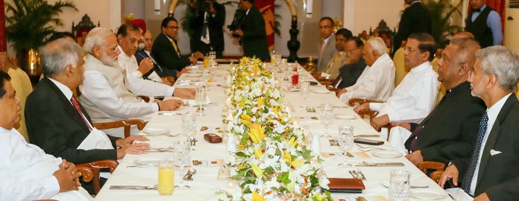 உத்தியோகபூர்வ விஜயத்தினை மேற்கொண்டு இலங்கை சென்றுள்ள இந்தியப் பிரதமர் நரேந்திர மோடிக்கு ஜனாதிபதி மைத்திரிபால சிறிசேனவினால் இராப்போசன விருந்து வழங்கப்பட்டுள்ளது.