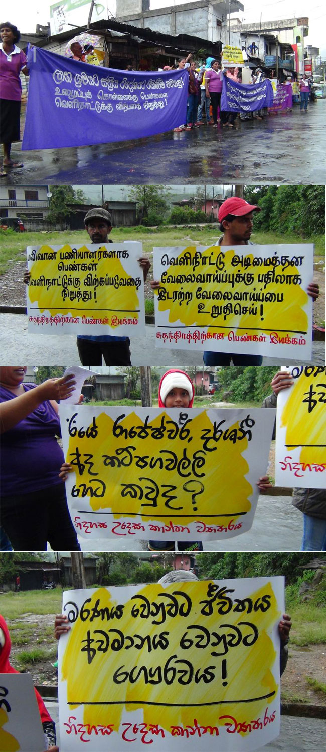 வெளிநாடுகளுக்கு பெண்களை அனுப்பி அடிமை தொழிலில் ஈடுப்படுத்துவதை தவிர்த்து அவர்களின் வாழ்வாதாரத்தை இலங்கையில் உறுதிப்படுத்த வேண்டும் என வலியுறுத்தி சுதந்திரத்திற்கான பெண்கள் அமைப்பு இன்று (02) மதியம் மஸ்கெலியா நகர பஸ் நிலையத்திற்கு அருகாமையில் ஆர்ப்பாட்டத்தில் ஈடுப்பட்டனர்.