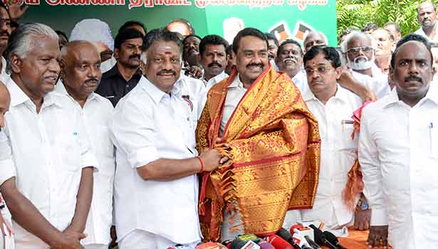 சென்னையில் முன்னாள் அமைச்சர் ராஜகண்ணப்பன் இன்று ஓ. பன்னீர்செல்வம் முன்னிலையில் அவரது அணியில் இணைந்தார். ராஜகண்ணப்பனுக்கு ஓ.பி.எஸ். சால்வை அணிவித்து வரவேற்றார்.