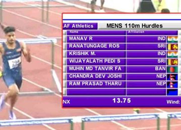 இந்தியாவில் நடைபெற்று வரும் 4ஆவது தெற்காசிய மெய்வல்லுநர் சம்பியன்ஷிப் போட்டியில் இன்று (25) நடைபெற்ற ஆடவருக்கான 110 மீற்றர் தடை தாண்டும் ஓட்டத்தில் ரொஷான் ரணதுங்க வெள்ளிப் பதக்கத்தை வென்றார். இந்தப் போட்டியை அவர் 13.90 வினாடிகளில் நிறைவு செய்து இந்தப்…