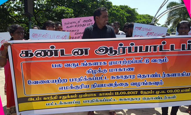 திருகோணமலை மாவட்ட தனியார் பஸ் சேவைகள் இன்று நள்ளிரவு முதல் பணிப்புறக்கணிப்பு போராட்டத்தை முன்னெடுக்கவுள்ளதாக தெரிவிக்கப்பட்டுள்ளது.கிழக்கு மாகாண போக்குவரத்து அமைச்சினால், திருகோணமலை மாவட்டத்தில் மட்டும் 8 தனியார் பஸ் நேரசூசி அதிகாரிகள் இடமாற்றம் செய்யப்பட்டதை கண்டித்தும், அவர்களின் இடமாற்றத்தை இரத்துச் செய்யுமாறுகோரியும்…