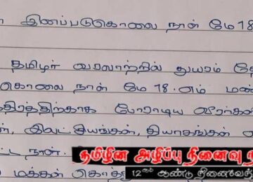 ஆண்டாண்டு காலமாக ஆண்டு வந்த தமிழினம். ஆலமரம் போல் வேரூன்றி விழுதுகள் விட்டு வளமோடு வாழ்ந்த எம் மக்கள். அம்மக்களை வதை வதைத்து கொன்று குவித்து அந்த நாளை கொண்டாடியும் மகிழ்ந்தது சிங்கள அரசு. ஆம் முள்ளிவாய்க்கால் என்ற பெயரைக் கேட்டாலே…