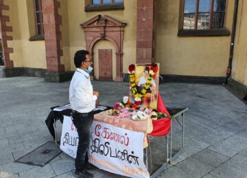 தமிழினப்படுகொலைக்கு நீதி கேட்டு அனைத்துலக சுயாதீன விசாரணையை வலியுறுத்தி ஜெனிவா நகரத்தில் நடைபெற்றுக் கொண்டிருக்கும் கவனயீர்ப்பு ஒன்றுகூடல்.