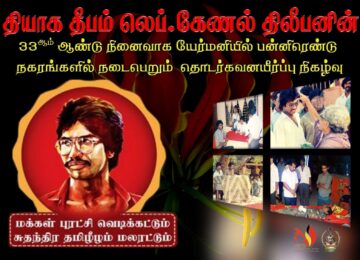 மாவீரர் நாளை முன்னிட்டு பிரான்சு தமிழ் இளையோர் அமைப்பினர் “பெருந்தாகமும் சிறுதாகமும்” எனும் தலைப்பில் மாவீரர் நினைவு சுமந்த புகைப்பட கவிதை உருவாக்க செயற்பாடு ஒன்றை ஏற்பாடு செய்துள்ளனர். இந்த முயற்சியின் பயனாக இளையோர்கள் மத்தியில் மாவீரர் பற்றிய சிந்தனைகளை விதைப்பதுடன்,…