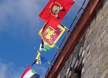 சர்வதேச நாடுகளின் கொடிகளுடன் பட்டொளி வீசிப்பறந்த தமிழீழத் தேசியக்கொடி
