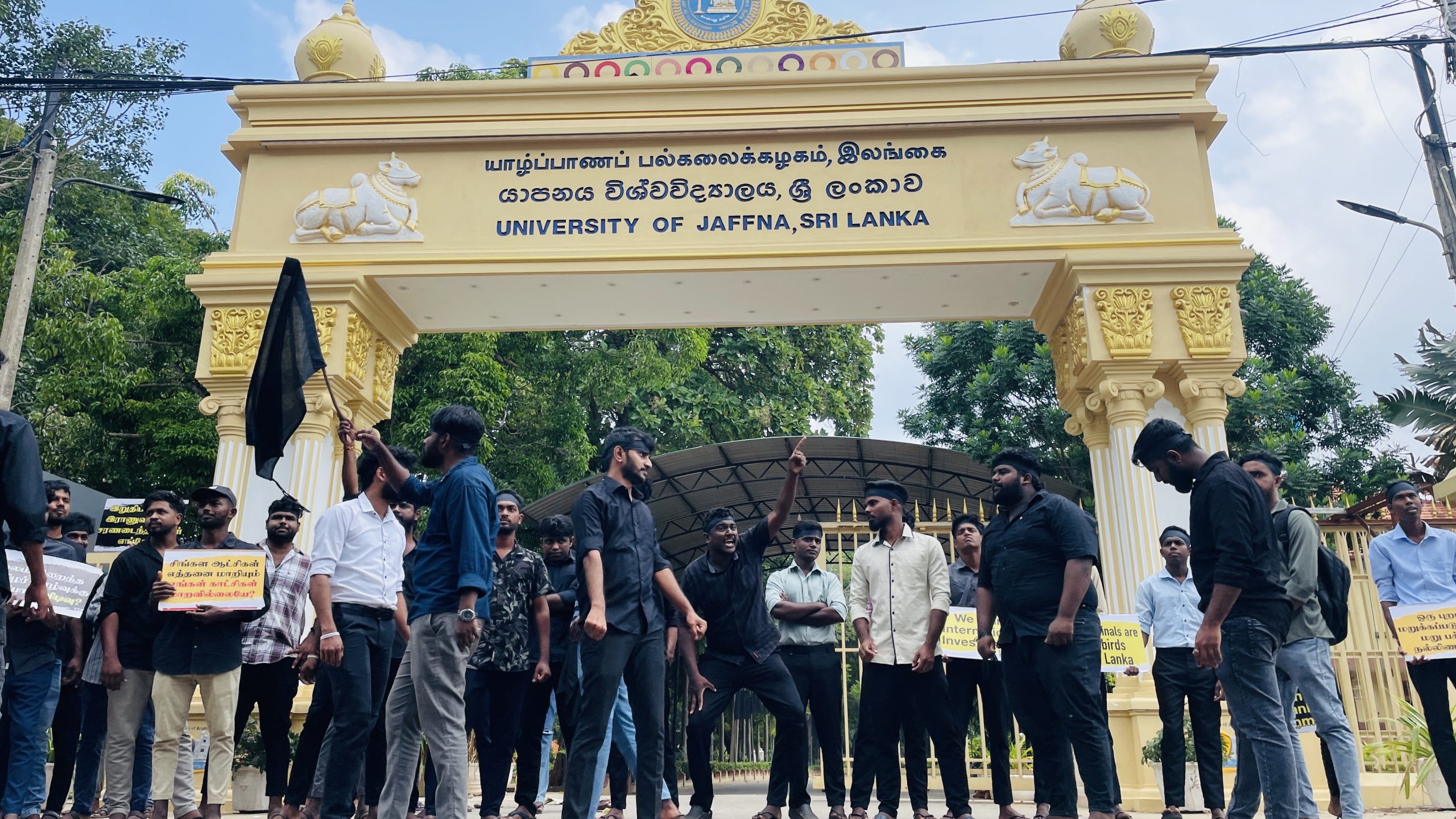 யாழ். பல்கலையில் தேசிய கொடி இறக்கப்பட்டு கறுப்புக்கொடி ஏற்றப்பட்டு போராட்டம்