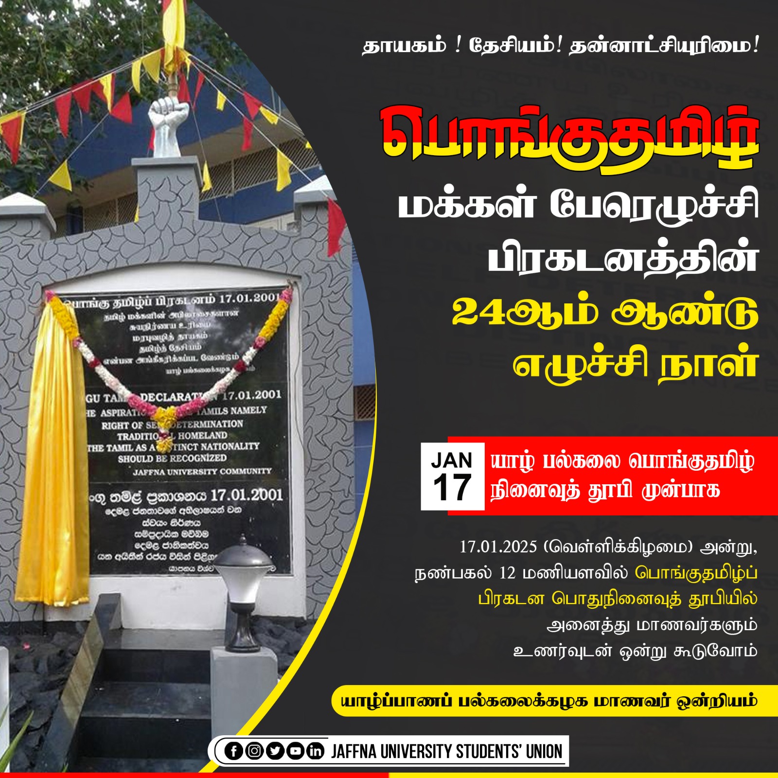 யாழ். பல்கலையில் பொங்குதமிழ் பிரகடனத்தின் 24ஆவது ஆண்டு எழுச்சிநாள் நிகழ்வுகள்