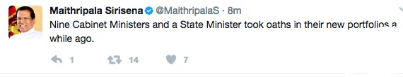 இலங்கை அமைச்சரவையில் மாற்றம்
