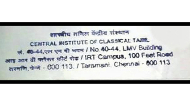 செம்மொழி எனும் சிறப்பு பெற்ற தமிழுக்கு நேர்ந்த கொடுமையாக, செம்மொழி தமிழாய்வு மத்திய நிறுவன முத்திரையில் தமிழுக்கு இடம் இல்லை…