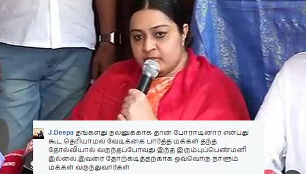 ஆர்.கே. நகரில் போட்டியிட கூடாது என மிரட்டல்: ஜெ.தீபா புகார்