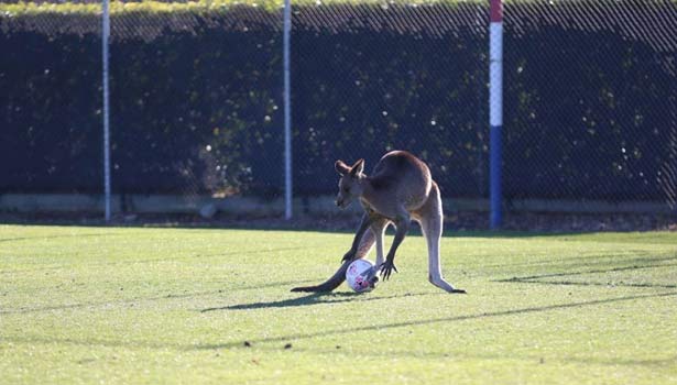மைதானத்தினுள் நுழைந்து கால்பந்து விளையாடிய கங்காரு !