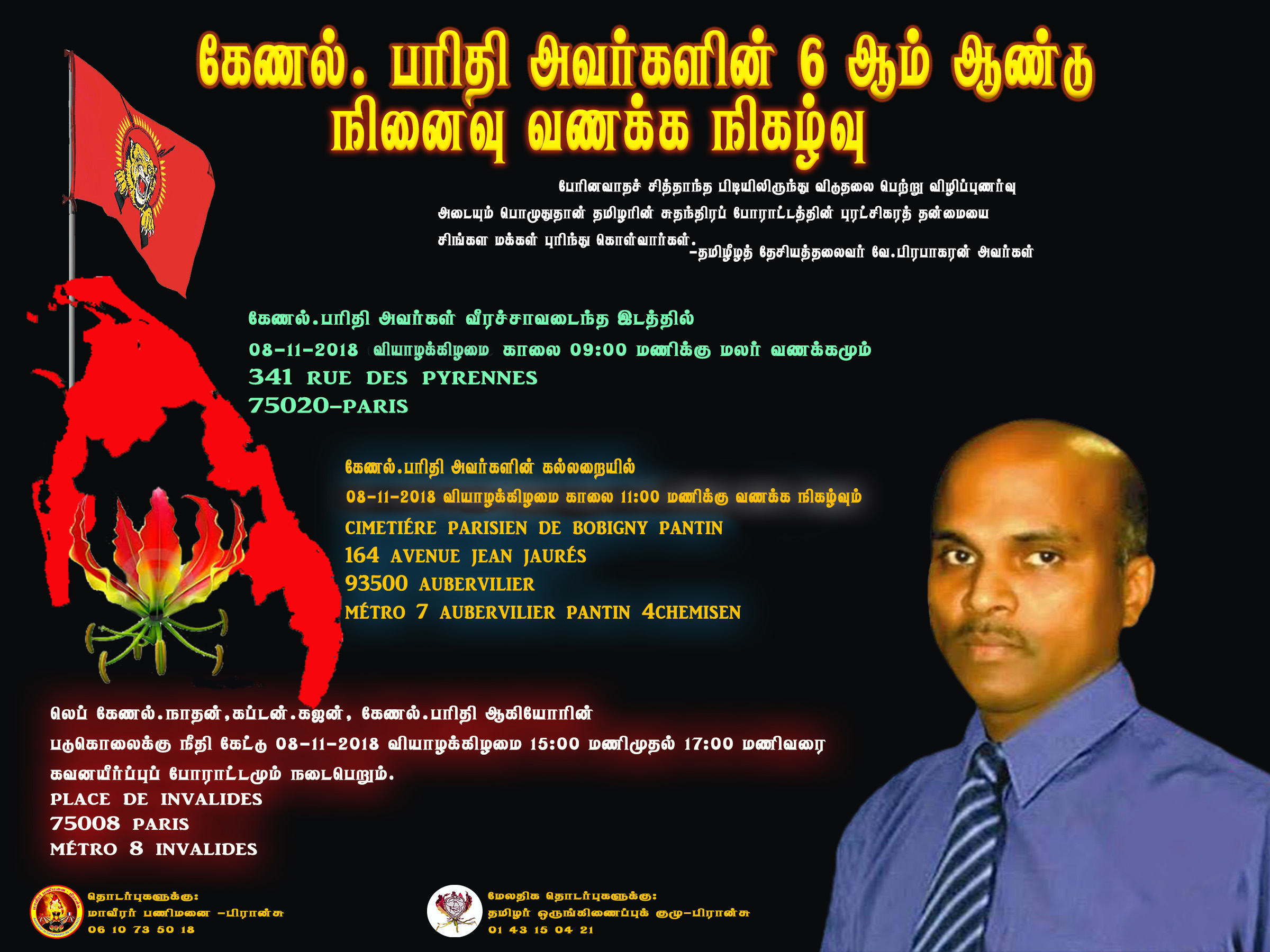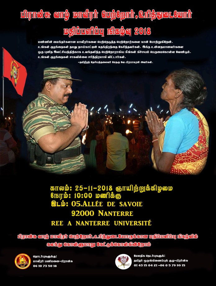 தமிழீழ மண்ணின் மைந்தர்களைப் பெற்றெடுத்த பெற்றோர் உரித்துடையோரை மதிப்பளிக்கும் நிகழ்வு எதிர்வரும் 25.11.2018 ஞாயிற்றுக்கிழமை பரிசின் புறநகர்ப் பகுதியில் ஒன்றான…