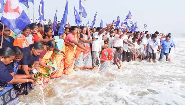 சுனாமியால் பலியானவர்களுக்கு கண்ணீர் அஞ்சலி செலுத்தும் நிகழ்ச்சி கடலூர் தேவனாம்பட்டினத்தில் இன்று நடந்தது. பின்னர் சுனாமியில் பலியான உறவினர்களுக்கு கடலில் பாலை ஊற்றி அஞ்சலி செலுத்தினர்.