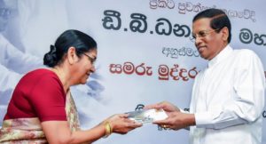 டி.பி.தனபால அவர்களது நினைவு முத்திரை ஜனாதிபதியினால் சிரேஷ்ட ஊடகவியலாளர்களுக்கும், டி.பி.தனபால அவர்களது பேரனான கலாநிதி தனுஷ்க மீகஹவத்த அவர்களுக்கும் வழங்கப்பட்டது.