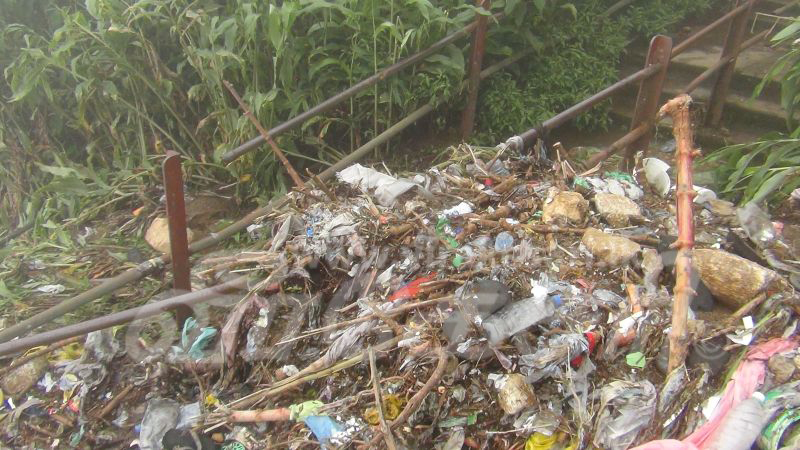 யாத்ரீகர்களினால் எடுத்து சென்று வீசப்பட்டுள்ள பொலிதீன் பிளாஸ்ட்டிக் உட்பட்ட குப்பைகள் கடந்த 10 ஆம் திகதி சீரற்ற காலநிலையின் போது சரிந்தமை குறிப்பிடத்தக்கது.