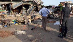 வடக்கு நைஜீரியாவின் மாய்துகுரி நகரில் மக்கள் நடமாட்டமுள்ள பகுதியில் இந்த தாக்குதல் நடத்தப்பட்டுள்ளதால், பாதுகாப்புக்காக போலீசார் குவிக்கப்பட்டுள்ளனர்.