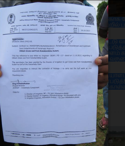 இரணைமடு குளத்தின் அபிவிருத்தி பணிகள் முன்னெடுக்கப்பட்டு வரும் நிலையில் குளக்கட்டின் அபிவிருத்திக்காக புற்கள் அணையின் பாதுகாப்பிற்காக பயன்படுத்தப்படுகின்றது.