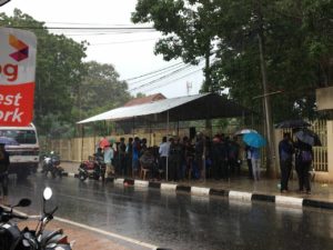 கொட்டும் மழைக்கு மத்தியில் மாணவர்களும், பல்கலைக்கழக ஊழியர்களும் போராட்டத்தில் ஈடுபட்டு வருகின்றனர்.