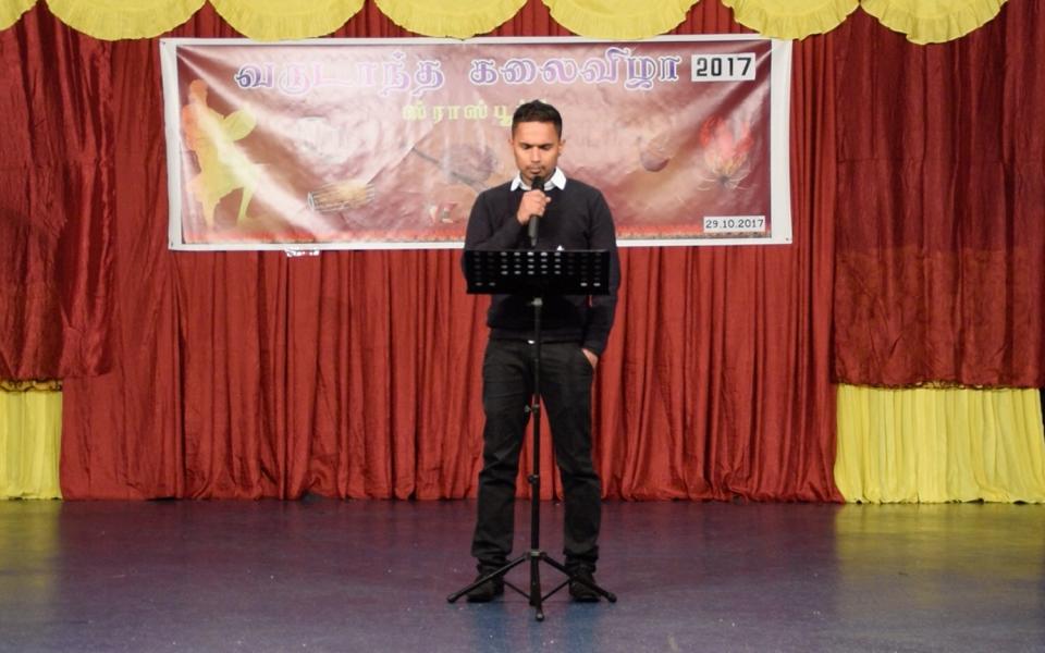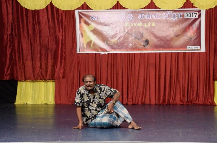 அதனைத் தொடர்ந்து தமிழர் கலைபண்பாட்டுக்கழகத்தின் மூத்த கலைஞர்களில் ஒருவரான திரு. தயாநிதி அவர்கள் தனிநடிப்பை செய்திருந்தார். பல உறவுகள் தமிழீழ மண்ணில் காணாமல் ஆக்கப்பட்டு பறிகொடுத்து பரிதவிப்பில் வீதியில் நீதி கேட்டு நிற்கும் பாத்திரத்தை கண்முன்னால் கொண்டு வந்து கண்ணீரை வரவழைத்த போதும், அதில் இன்னும் ஒருபடி மேலாகச் சென்று எங்கள் மண்ணில் சிங்களத்தின் தமிழின அழிப்பிலிருந்து மக்களை காப்பாற்றவும் தமிழ் மக்களின் நிம்மதியான வாழ்வுக்காக ஒரு தேசம் வேண்டும் என்பதற்காக சிங்கள தேசத்தாலேயே ஆயுதப் போராட்டத்திற்கு தள்ளப்பட்டு அதில் தங்கள் உடல் உறுப்புக்களையும், அவயவங்களையும் இழந்து எம்மக்கள் எமக்கு உதவுவார்கள் என்ற நம்பிக்கையோடு இருக்கும் எம் தேசமக்களுக்கு உதவும் மிகப்பெரிய மனிதநேயப் பணியை செய்யவிடாது இங்கு முடக்குகின்ற தேசியம் பேசும் சிலரின் செயற்பாடுகள் மிகுந்த கவலையைத் தருகின்றது என்பதையும் மக்களுக்கு கூறியிருந்தார்.