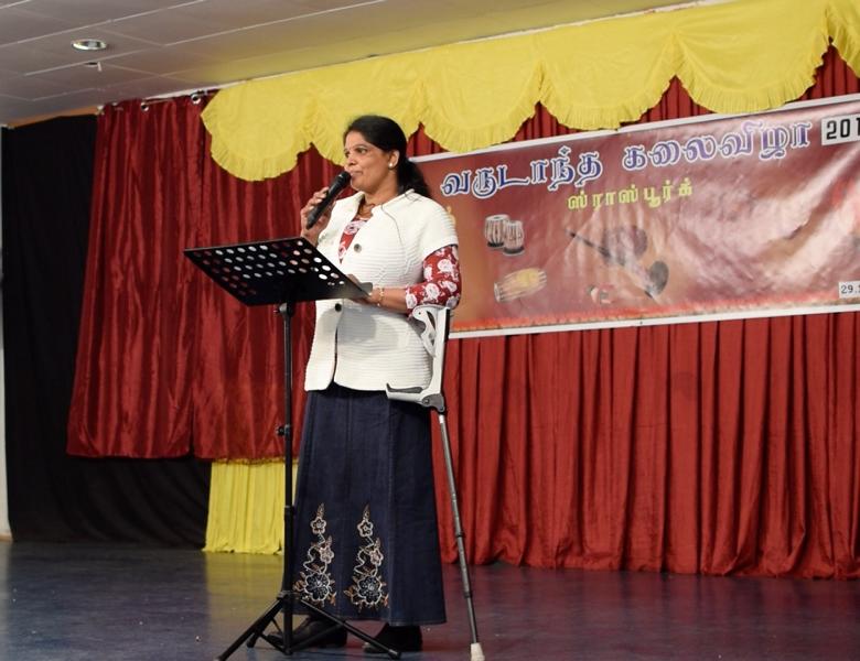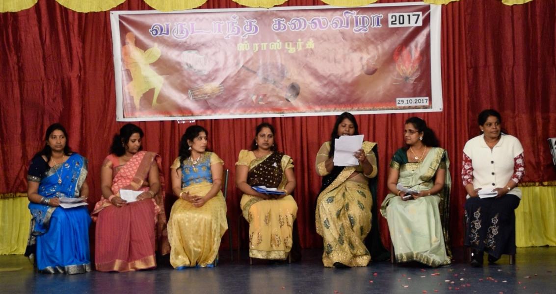 இனிவரும் காலங்களில் இந்த நிலைப்பாடுகள் மாற்றமடைய வேண்டும் அதுவே ஒவ்வொருவரும் தாம் இதுவரைகாலமும் ஆற்றிய பணிக்கு கிடைக்கின்ற நற்பெயராகும் என்பதையும் தெரிவித்திருந்தார்.ஸ்ராஸ்புக் தமிழ் ஆர்வலர்களால் புதுவையரின் புதல்விகள் என்ற தலைப்பிலான கவியரங்கமும் நடைபெற்றது. தாயகத்தில் விழுப்புண் அடைந்த மக்களுக்கு உதவுமுகமாக சிற்றுண்டிகளைச் செய்து வழங்கி அதில் கிடைக்கும் சொற்ப பணத்தை ஒன்று சேர்த்தும், நல்லுள்ளங்கள் வழங்கும் உதவியையும் ஒருங்கமைத்து உதவி வருகின்ற மனித நேயச் செயற்பாட்டிற்கு எம்மவர்கள் தமது குடும்பங்களாக வந்து தம்மாலான பணியை அர்ப்பணிப்புடன் செய்து வருவதையும் அந்த நிகழ்வில் காணக்கூடியதாக இருந்தது. மண்டபம் நிறைந்த மக்களோடு நடைபெற்ற இந்தக்கலைநிகழ்வு இரவு 20.00 மணியளவிலே சிறப்பாக நடைபெற்று முடிந்திருந்தது.