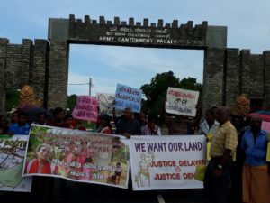 30 வருடங்களிற்கு மேலாக படையினரின் கட்டுப்பாட்டில் உள்ள தமது நிலங்களை விடுவித்து தங்கள் அகதி வாழ்க்கைக்கு முற்றுப் புள்ளி வைக்குமாறு ஆர்ப்பாட்டத்தில் ஈடுபட்டவர்கள் வலியுறுத்தினார்கள்.