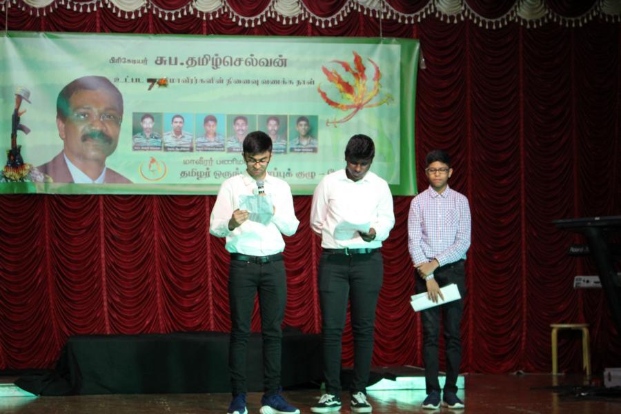 பின் மண்டபம் நிறைந்த மக்கள் வரிசையாகவந்து திருவுருவப்படங்களுக்கு சுடர் ஏற்றி மலர்தூவி தங்கள் வணக்கத்தைத் தெரிவித்தனர். அதனைத் தொடர்ந்து இசைவணக்கமும் கவிதை மற்றும் சிறுவர்களின் பேச்சு உட்பட இன்னும் பல நிகழ்வுகள் மிகச்சிறப்பாக இடம்பெற்றது.