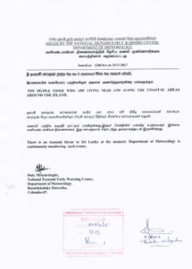 கிழக்கு மாகாணம் உள்ளிட்ட நாட்டின் எந்தப் பகுதியிலும் இயற்கை அனர்த்தம் ஏற்படுவதற்கான வாய்ப்பில்லையென அந் நிலையம் மேலும் தெரிவித்துள்ளது.