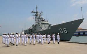 இலங்கை கடற்படையினர் கடற்படை மரபுகளுக்கமைய மரியாதையுடன் அவுஸ்திரேலிய கடற்படைக்கப்பலை வரவேற்றனர்.