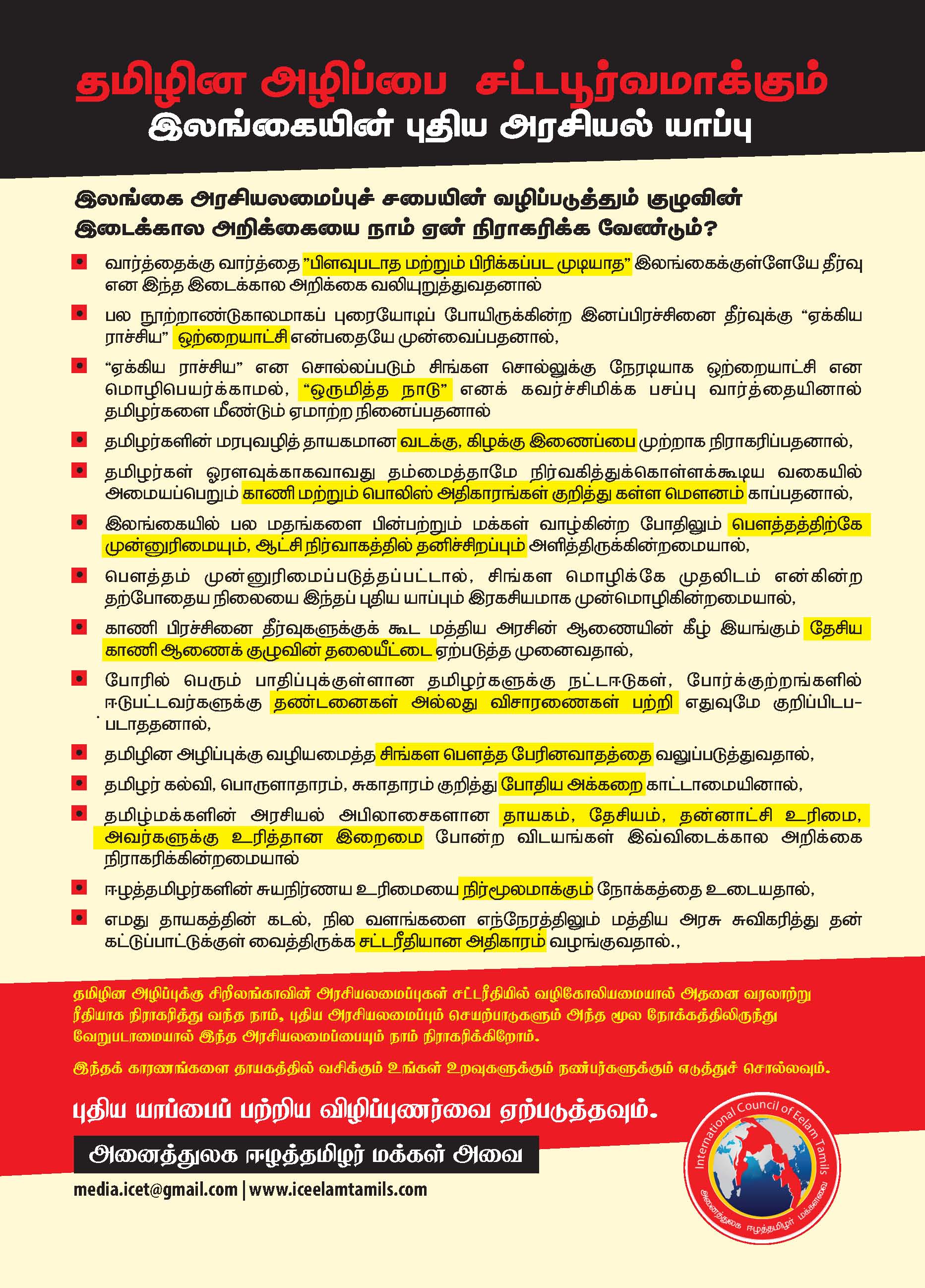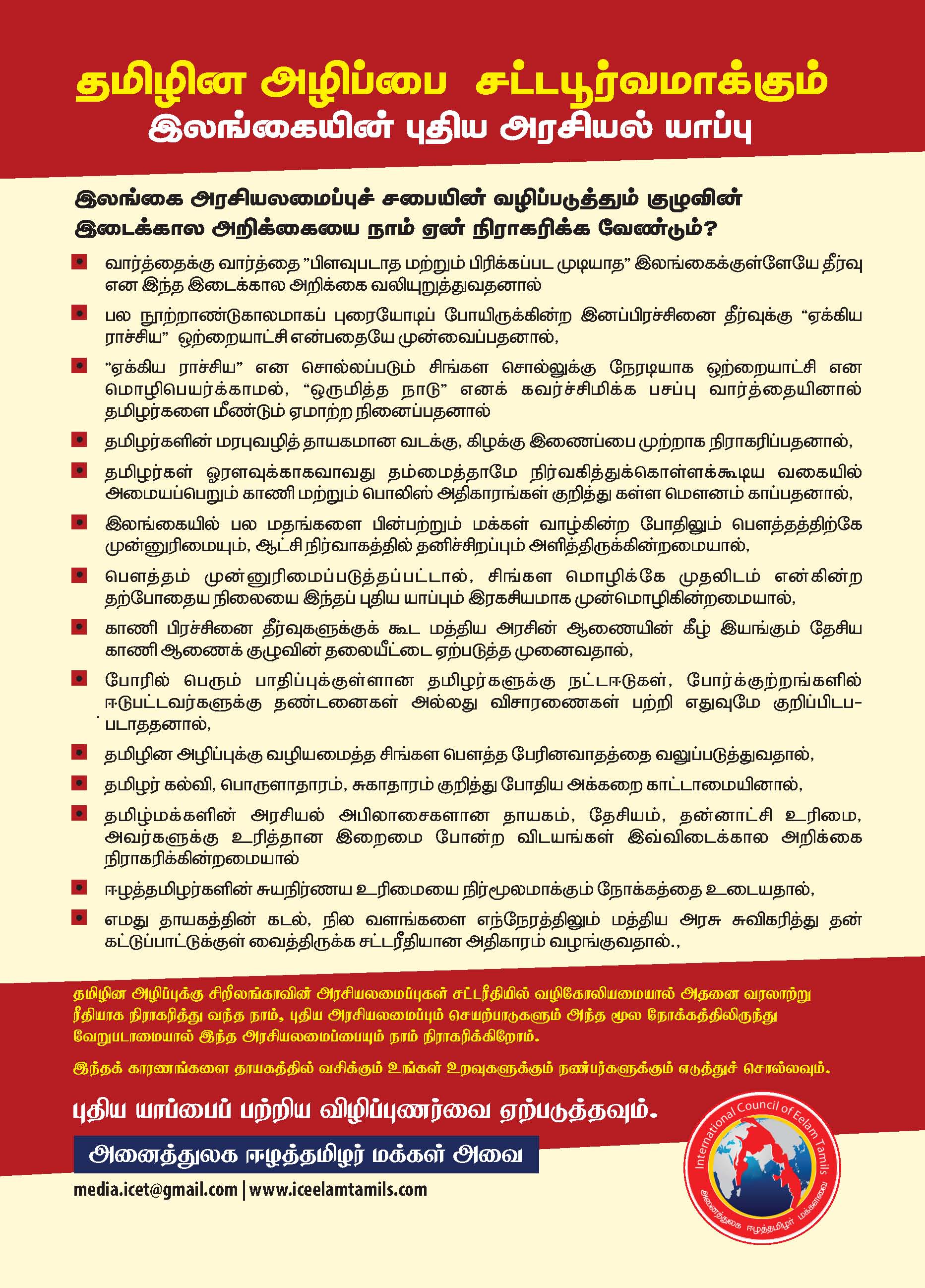 - தமிழின அழிப்பை சட்டபூர்வமாக்கும் இலங்கையின் புதிய அரசியல் யாப்பு