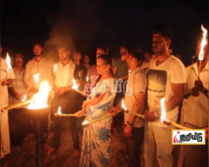 தீபம் ஏற்றியதை தொடர்ந்து மாவீரர் படங்களுக்கு மாலை அணிவித்து அஞ்சலி செலத்தப்பட்டது.