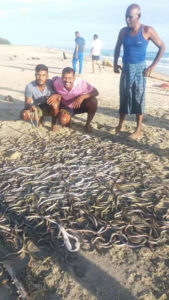 அண்மைக் காலமாக கடல் கொந்தளிப்பு காரணமாக மீனவர்கள் பாரிய கஷ்டத்துக்கு மத்தியில் தங்களது வாழ்கையினை கொண்டு செல்கின்ற நிலையில் இன்று இவ்வாறு வலையில் பாம்புகள் சிக்கியுள்ளது பெரும் ஏமாற்றத்தை தந்துள்ள நிலையிலும் ஏது காலநிலை மாற்றங்கள் ஏற்பட சாத்தியக்கூறுகள் உள்ளதாவென மக்கள் மத்தியில் அச்சநிலையொன்று ஏற்பட்டுள்ளது.