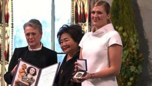 இந்த (2017) ஆண்டின் அமைதிக்கான நோபல் பரிசை அணு ஆயுதங்களை ஒழிக்க பிரசார இயக்கம் நடத்திவரும் ‘ஐகேன்’ அமைப்பின் தலைவர் பீட்ரைஸ் ஃபிஹ்ன் இன்று பெற்று கொண்டார்.