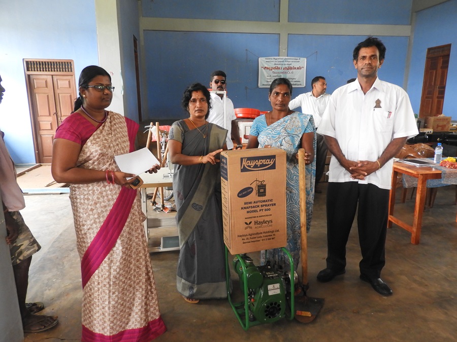 இவ்வாறு சு.பாக்கியம், இ.தெய்வானை, சூ.மக்ரெட், இ.முத்துலட்சுமி, த.சந்திரலேகா, இ.குளோரியா, சா.ரதனி, க.சிவகலா, மேரி குன்சலா, வெ.இராஜேஸ்வரி, இ.இந்துராணி, இ.விஜயராணி, இ.மனோன்மணி, யோ.செல்வராணி, எஸ்.எம்.ரூபியா மற்றும் யோ.சுபாசினி ஆகிய 16 பெண் தலைமைத்துவ குடும்பங்களிற்கு விவசாயம் செய்வதற்கு தேவையான உபகரணங்கள் வழங்கப்பட்டது.